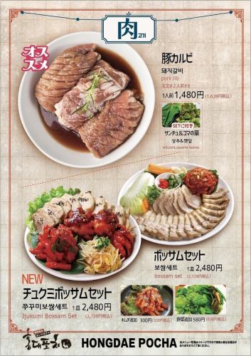 【お肉料理】豚カルビ、ポッサムセット、チュクミポッサムセット。