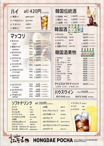 【飲み物】韓国カクテルはもちろん、各種サワーやハイボールなど多数御用意!!